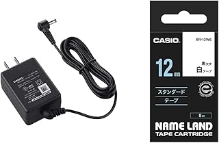 【セット買い】カシオ ラベルライター ネームランド ACアダプター ADA95100L & ラベルライター ネームランド 純正 テープ 12mm XR-12WE 白地に黒文字
