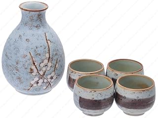 m.v. Trading Japanese 5ピースセラミックSake Set with saukra花、(ボトル: 12-ounces |カップ: 1-ounces ) グリーン MFJQ7BPV