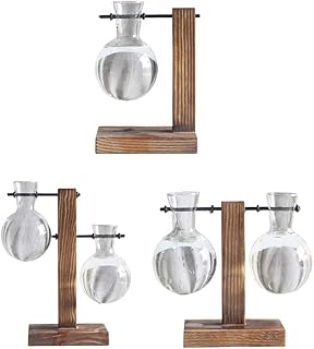 ガラス花瓶 水耕栽培 木製スタンド 卓上花瓶 一輪挿し 電球形 花器 植物 フラワーベース 木製フレーム 家飾り 結婚式 装飾 ギフト (3個容器)