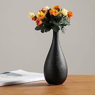花瓶 フラワーベース 一輪挿し 北欧 花器 陶器 ミニ花瓶 20cm セラミック 装飾品 フラワーベース 陶器 インテリア 家の装飾 手作り 陶器花器セラミック プレゼント (ブラック)