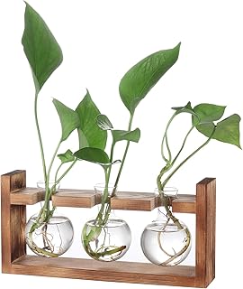 FLAMEER 花瓶 3個 ガラス テラリウム 水耕栽培 フラワーベース 盆栽 花器 植木鉢 木製スタンド付き 一輪挿し