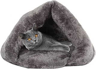 Happyyoo 猫ベッド ペット用ベッド ペット用寝袋 子犬 猫用 ドーム型 ペットハウス ペットクッション ふわふわベッド 寝床 キャットベッド 小型犬 ペットソファ 多機能 2WAY 小動物用 安眠 犬猫兼用 保温防寒 暖かい休憩所 ぐっすり眠れる 秋冬兼用 モコモコ かわいい 冷房対策 洗える 綿質 犬小屋 ペット用品 四季適用(40*40cm, グレー)