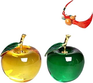 【クローブキューブ】 りんご ガラス オブジェ ペア 2色 セット 風水 インテリア 水晶 開運 瓢箪ストラップ付き (黄×緑)