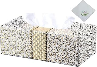 【クローブキューブ】 高級 ティッシュ ケース ゴールド 上品 インテリア 北欧 風 豪華 特製ハンカチ付き (金×白 GOLDWHITE)