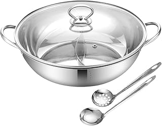 Wetanly 火鍋 卓上二食鍋 両手鍋 2種類の味を同時に楽しめる 仕切り鍋 直径約:30cm IH対応 2食鍋 蓋付 二槽火鍋 中華火鍋 ガラス蓋付き