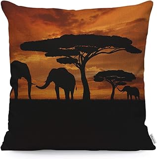 WONDERTIFY クッションカバー クッションカバー アフリカの動物 象 家族 散歩 日没 ソフトリネン 枕カバー 寝室 リビング ソファ ファームハウス ソファ クッションカバー 18x18インチ 45x45cm