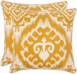 Safavieh枕コレクション18インチダマスク枕 18" x 18" イエロー PIL839A-1818-SET2