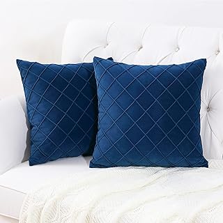 MingBo ベルベット無地格子柄クッションカバー ネイビーブルー 18x18インチ 2個セット プリーツテクスチャ ダイヤモンドチェック柄 ソフト幾何学模様 正方形 ソファ/カウチ/リビングルーム用
