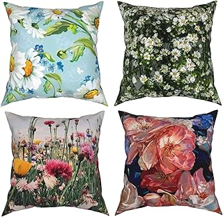 春の花 花柄 クッションカバー 小さなデイジー クッション ソフト 四角いケース ホーム装飾 1818 4枚セット ソファ ベッド用 (中身なし)
