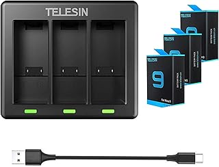 TELESIN Gopro hero 10/Hero 9 バッテリー用充電器 3個同時充電 バッテリーチャージャー 3チャンネルの充電器 USB & Type-C入力充電器 Gopro hero 10/9 対応 ゴープロアクセサリー (充電器+バッテリー*3個)