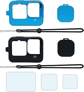SIOTI Gopro 9 シリコン ケース Gopro 9 シリコン スリーブ ケース Hero 9 シリコン ハウジング Gopro 9 プロテクター カバー 2パック+ストラップ+レンズ キャップ+ 3ピース 強化 ガラス プロテクター付き GoPro Hero 9用 シリコン ケース Gopro9用 ブラック