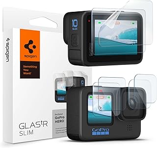 Spigen 液晶保護フィルム Gopro Hero 10 / Gopro Hero 9 Black 対応 6枚セット ガラスフィルム(レンズ用 2枚と前面ディスプレイ用2枚) フィルム(後面ディスプレイ用 2枚)