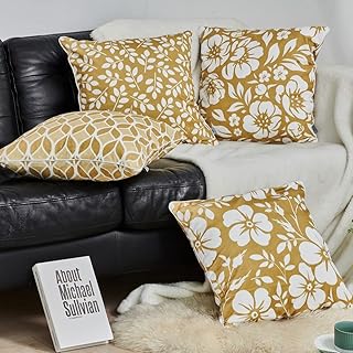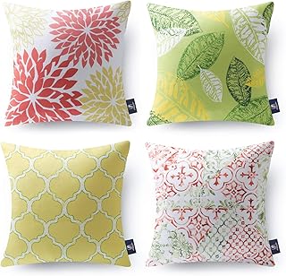 Phantoscope クッションカバー New Living 北欧 4枚セット 45×45cm シンプル 座布団カバーおしゃれ クラシック ソファ背当て 木ノ葉 柔らかい 抱き枕 イエローグリーン