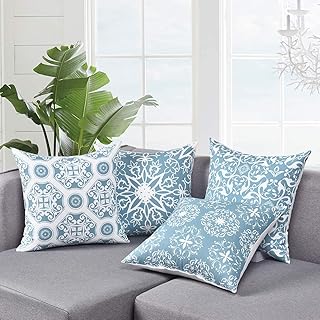 Athbavib クッションカバー 4枚セット 45*45cm ライトブルー 北欧 幾何学模様 抱き枕カバー 装飾枕カバー ボヘミアンスタイル 曼荼羅 おしゃれ 柄 モダン ポリエステル 柔らかい ソファ背当て 座布団カバー インテリア装飾