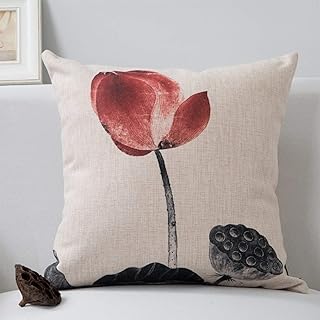 クッションカバー 45×45cm ロータス 花柄 ピロケース ベージュ クラシック ソファ背当て シノワズリ 座布団カバー 抱き枕カバー シンプル 洗い替え 枕カバー 車用 部屋飾り 装飾 アンティーク
