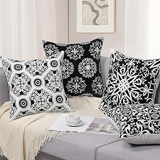 Athbavib クッションカバー 4枚セット 45*45cm ブラック 北欧 幾何学模様 抱き枕カバー 装飾枕カバー ボヘミアンスタイル 曼荼羅 おしゃれ 柄 モダン ポリエステル 柔らかい ソファ背当て 座布団カバー インテリア装飾