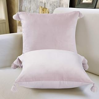 YINFUNG クッションカバー 45×45cm 冬 フリンジ 北欧 可愛い おしゃれ ベルベット タッセル付き インテリア 肌に優しい ソファ背当て 腰当て 装飾枕カバー 座布団カバー ファスナー式 2枚セット (ピンク)