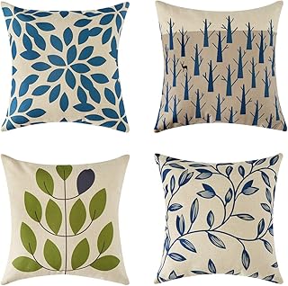 Topfinel クッションカバー 北欧 45×45CM おしゃれ リネン 自然 木の葉 枕カバー ソファ背当て 4セット