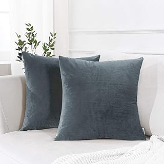 Topfinel クッションカバー 60×60 2枚セット 北欧 無地 濃いグレー お洒落 ベルベット ソファ背当て 装飾枕カバー