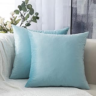 クッションカバー 45 45 Topfinel 北欧 無地 おしゃれ ベルベット ソファ背当て 装飾枕カバー 座布団カバー スカイブルー 2枚セット