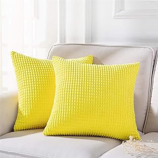 Topfinel クッションカバー 45×45cm 北欧 可愛い 手触り良く コールテン ソファ背当て 装飾枕カバー モフモフ 座布団カバー レモン 2枚セット