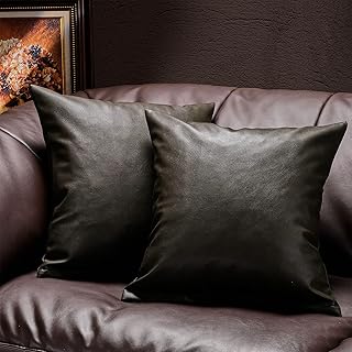 Topfinel クッションカバー 45 45 PU レーザー 革 おしゃれ 北欧 夏用 手触り良く ソファ背当て 装飾枕カバー 車飾り 無地 座布団カバー 枕カバー ブラック 2枚セット