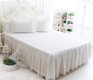 選べる3色 可愛いベッドスカート レースに刺繍模様ベッドスカート (シングル, C)