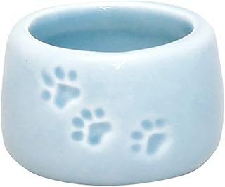 ペット仏具 水入れ ご飯入れ 単品 ミニ 足あと 選べる3色 陶磁器 (ブルー) 直径4.7cm