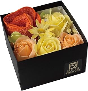 ユメギフト 泉州タオルフラワー フレグランスボックス ソープフラワー 選べる3色 (オレンジ, S)